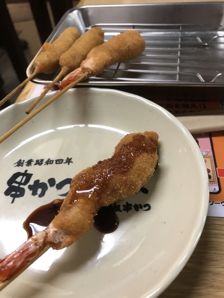 元祖串カツ2本、エビ2本。