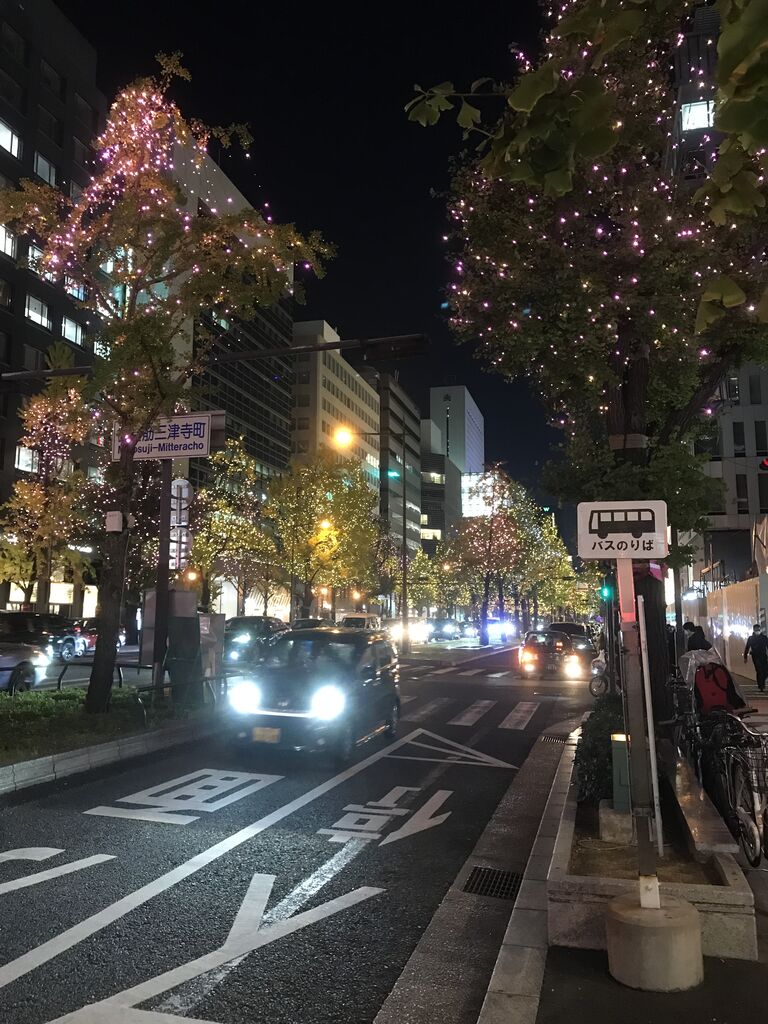 イルミネーションが美しい「御堂筋」を北上します。