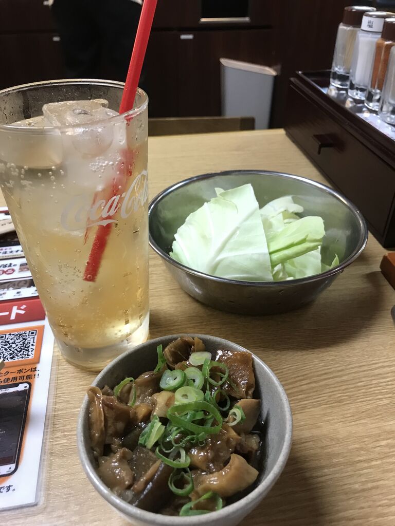 今日、ランチの待ち時間に読んだ本の中でヒロインが飲んでいたジンジャエールと、どて焼き。