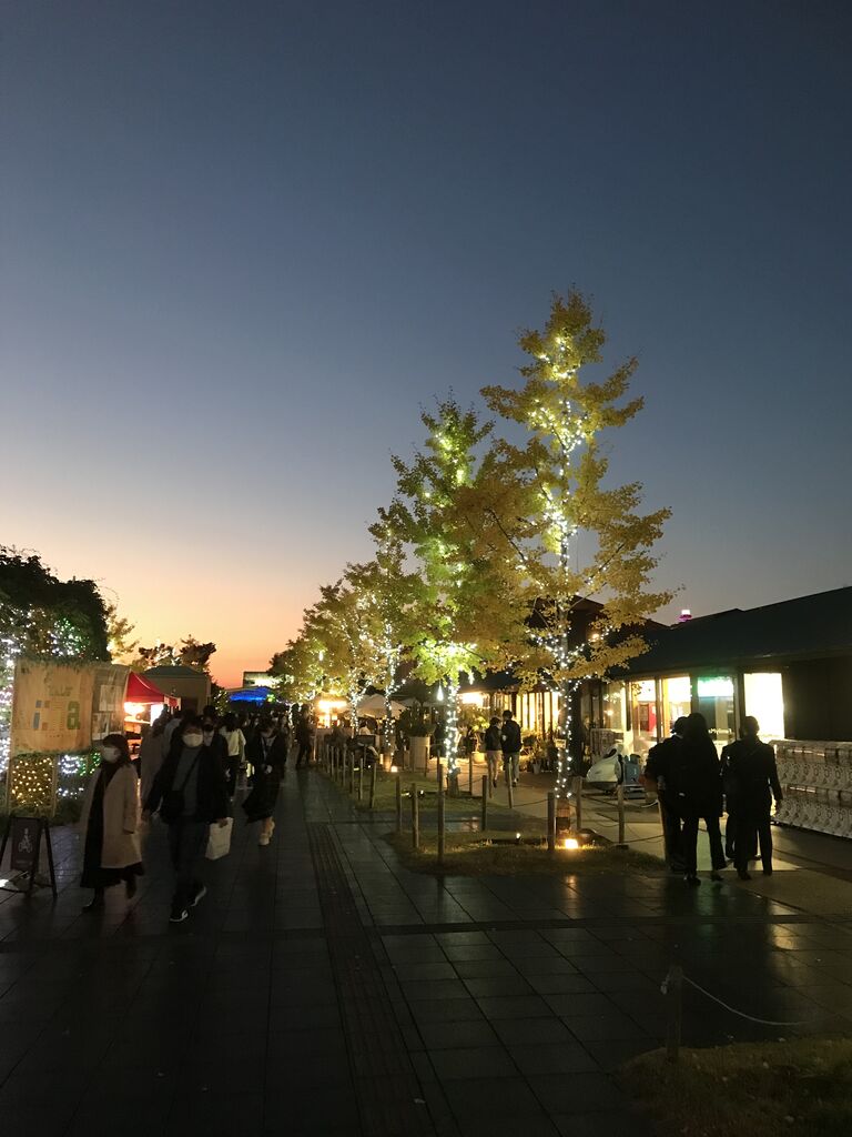 イルミネーションでライトアップされた天王寺公園を歩きます。