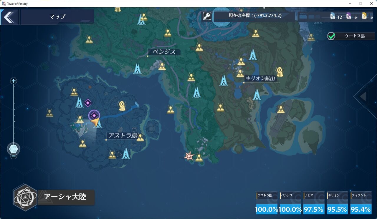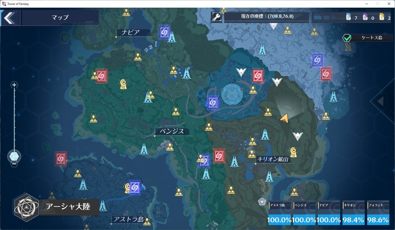 アーシャ大陸のときは、適当にブラブラと探索してたのですが、今回は攻略MAPを見ながら、1つずつしらみつぶしに行っております。