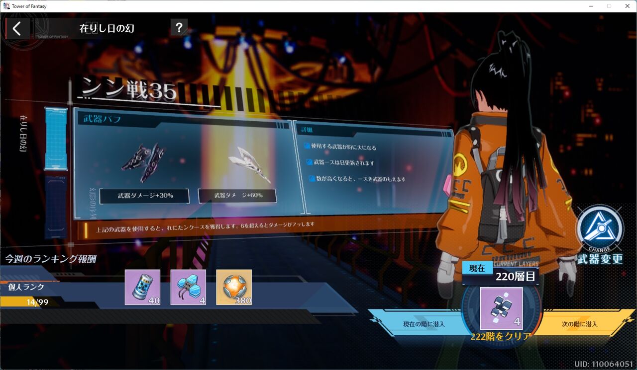 お友達から「フレイヤさんがいると、200階までいけるらしい」という話を聞いたとき、私は110階でした。