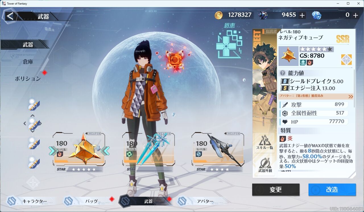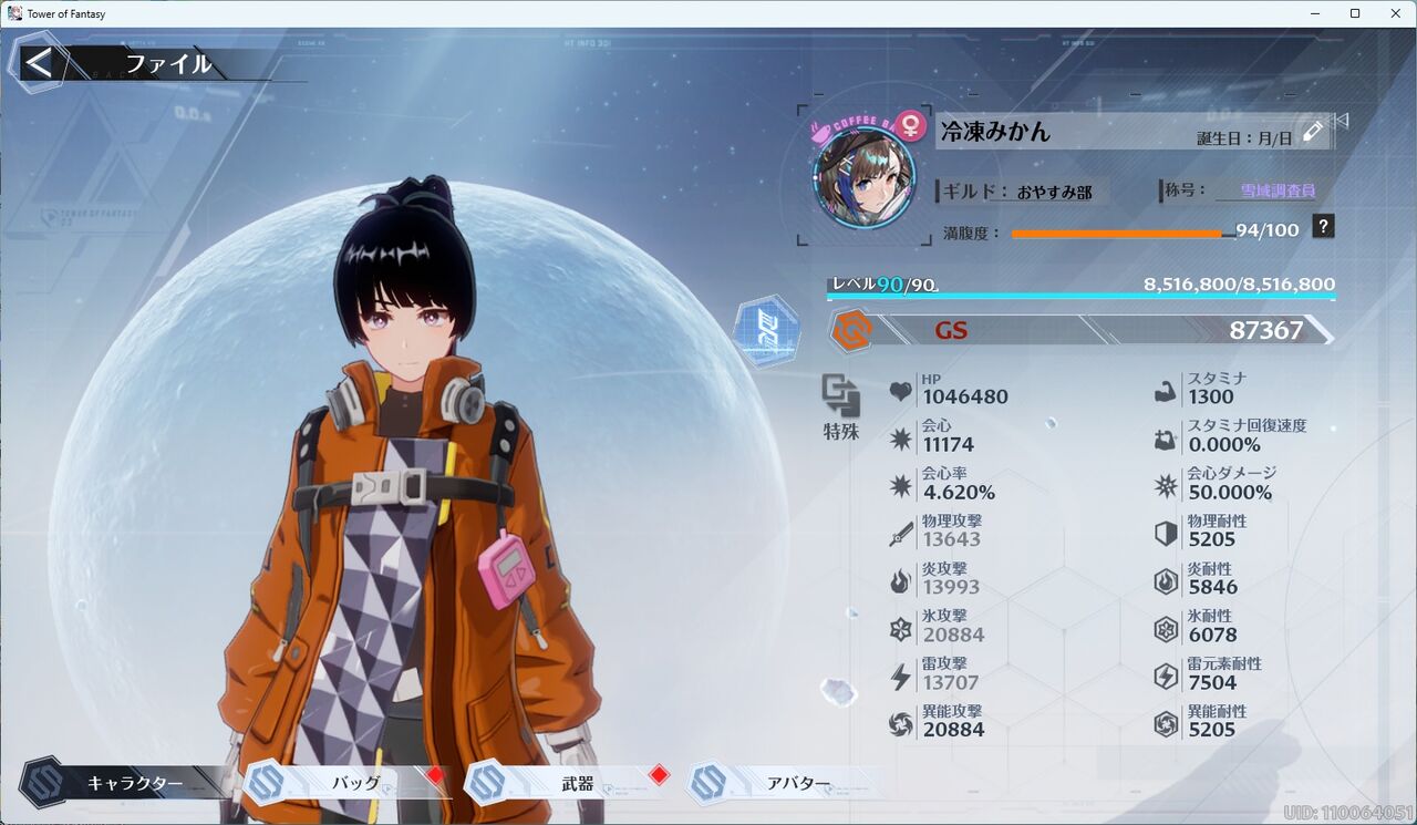 強攻PTではGS=84000くらいですが、恩恵の凸が進んだので数値UPです。